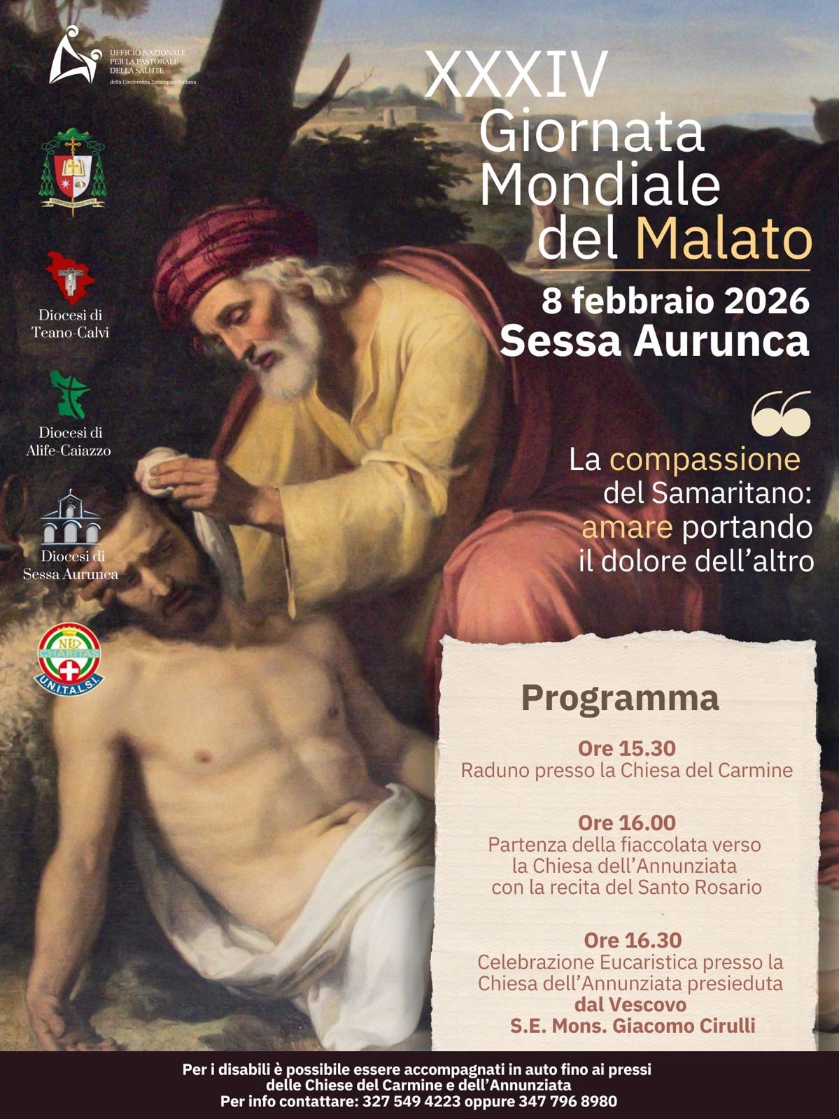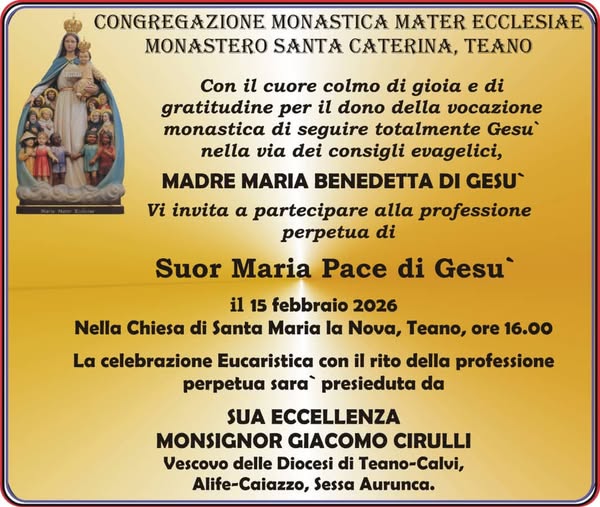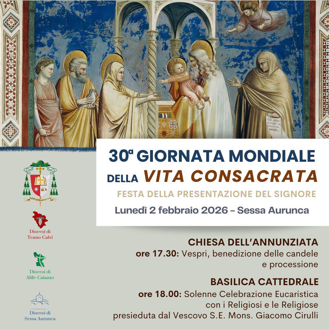 News Solenne Dedicazione del nuovo Altare e spazi liturgici della Cattedrale Santi Pietro e Paolo La Diocesi di Sessa Aurunca si prepara a vivere due giornate di grazia e di grande significato ecclesiale e culturale nella sua Chiesa madre Nomine del Vescovo Impegni e progetti che restituiscono dignità. La conferenza stampa delle Caritas di Teano-Calvi, di Alife-Caiazzo e di Sessa Aurunca alla vigilia della IX Giornata Mondiale del povero Terza Assemblea sinodale delle Chiese in Italia. Anche le Diocesi guidate dal Vescovo Giacomo Cirulli Dal 24 al 26 ottobre a Roma per il Giubileo delle Equipe sinodali e la votazione del Documento sul cammino della Chiesa italiana Segreteria Vescovo Diocesi di Sessa Aurunca 40° anniversario di sacerdozio e 5° anniversario di episcopato di S. Ecc.za Mons. Giacomo Cirulli Mercoledì la Celebrazione presso il Santuario Santa Maria dei Lattani in Roccamonfina Archivio Notizie Richiesta partecipazione procedure di selezione Animatore di Comunità del Progetto Policoro 2025 Aperte le procedure di selezione dell’AdC del Progetto Policoro della Diocesi di Sessa Aurunca per l’anno 2025. Giornate di valorizzazione del patrimonio culturale ecclesiastico 2024 Il programma delle Diocesi di Teano-Calvi, di Alife-Caiazzo e di Sessa Aurunca - Comunicato Stampa ❮ ❯ Decreto del Vescovo e indicazioni delle Chiese Giubilari Giornata mondiale del Malato: “Vangelo e giustizia sociale” l’appello del Vescovo Le Diocesi dell’alto casertano in cammino verso l’unica Chiesa: nuovi incarichi e nuove foranie Nuove nomine nelle Diocesi di Teano-Calvi, di Alife-Caiazzo e di Sessa Aurunca Archivio Notizie https://youtu.be/-Ok4PW9qiig?si=U5i4zPpsmVlHOeAZhttps://youtu.be/Ll0GSFLeULU?si=RRnIZI2Cyd3xG4Xjhttps://youtu.be/npfVf1OOsic?si=tCU4Jnj_7rQ4339chttps://youtu.be/DfzbOdREXNU?si=BPAfqoGK1ZextNcn Video Gallery Il tuo browser non supporta i frame Photogallery Pellegrinaggio Giubilare tutte le gallery