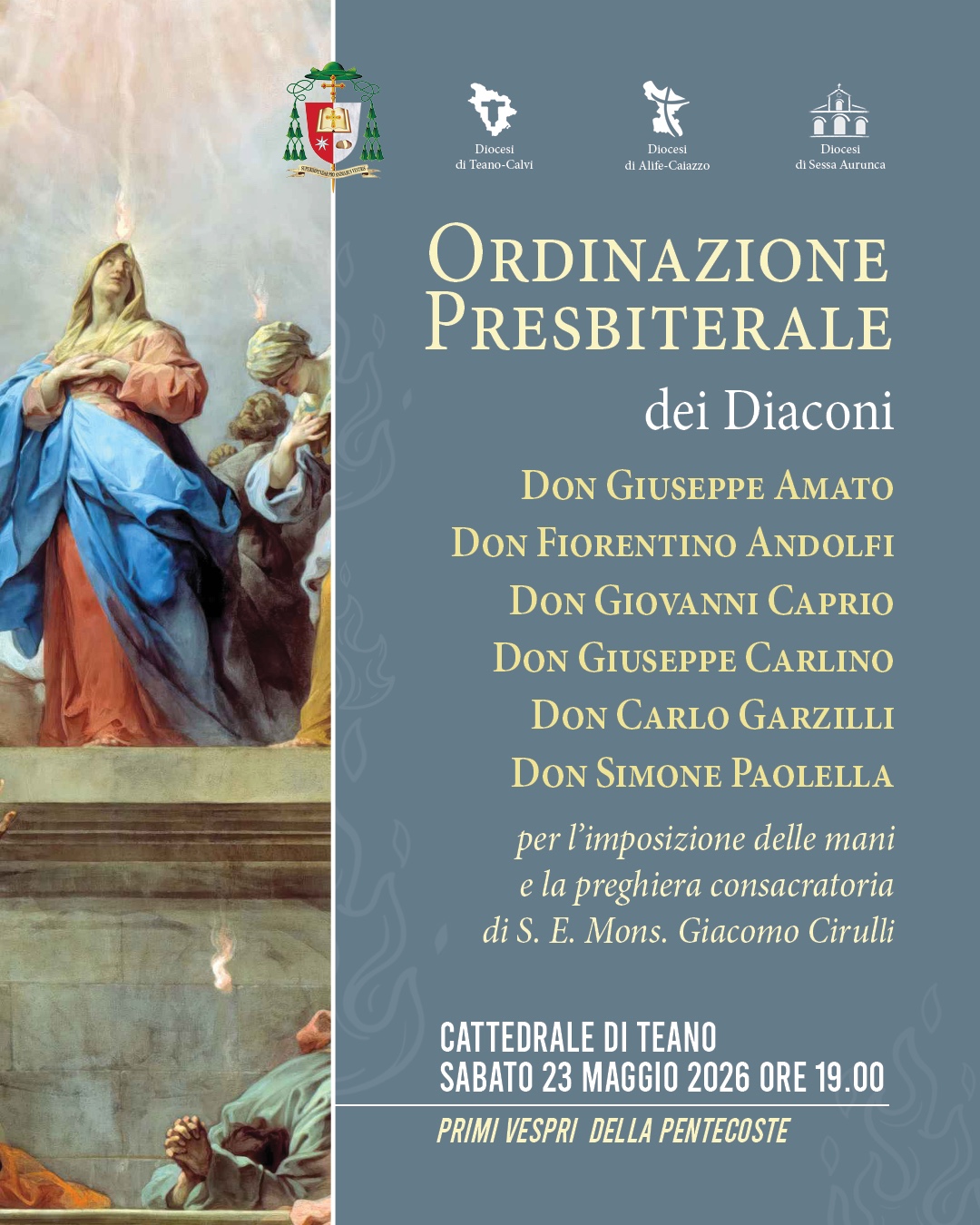 News Messa Crismale, l’unità della Chiesa. La celebrazione nella cattedrale di Alife Mercoledì 1 aprile il Vescovo S. E. Mons. Giacomo Cirulli ha presieduto la messa solenne con i presbiteri e le comunità delle Diocesi di Teano-Calvi, di Alife-Caiazzo e di Sessa Aurunca Riammessi alle celebrazioni dei Sacramenti padrini e madrine Bando per il Servizio Civile Universale – Caritas Diocesi di Sessa Aurunca Calendario Pastorale 2026 Scarica il Calendario pastorale 2026 in formato PDF Calendario Pastorale 2026 Scarica il Calendario pastorale 2026 in formato PDF Segreteria Vescovo Diocesi di Sessa Aurunca Archivio Notizie Bando per il Servizio Civile Universale – Caritas Diocesi di Sessa Aurunca Nomine del Vescovo ❮ ❯ https://youtu.be/dL7Q8NaM2YQ?si=68f8BuRxKNpjK6dehttps://youtu.be/wfmr8MZLvEE?si=B5ZTdpahZGIiorDthttps://youtu.be/I4l7cpE5VhU?si=VXh1tnLJeyuNiXTUhttps://youtu.be/9XWKUzpBCz4?si=5hheg7Z9a32TfNns Video Gallery Il tuo browser non supporta i frame ❮ ❯