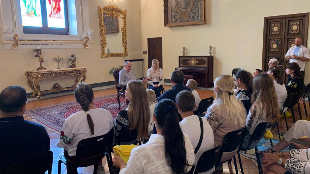 Nel pomeriggio di venerdì 12 settembre, i giovani ospiti — accompagnati da don Osvaldo Morelli, dall’équipe diocesana e dal Sindaco di Mondragone, Francesco Lavanga — hanno raggiunto l’Episcopio di Teano per incontrare il Vescovo delle Diocesi di Teano-Calvi, Alife-Caiazzo e Sessa Aurunca. Un incontro carico di affetto e condivisione, pensato per lenire le ferite invisibili che la guerra ha lasciato nei loro cuori.
